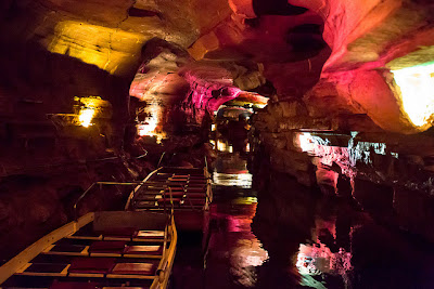 Howe Caverns 地底下 156 英尺的洞穴,存在著鐘乳石、石筍、以及各種不同形狀的岩壁與岩石。到了這裡要怎麼玩呢?通常行程會先走一段導覽,然後再坐著小船順著河流欣賞,這裡的河道不是很寬,所以有時兩條船交會時需要其中一條停下來等待。在氣溫方面,因為是在地底下,而且又有一定的濕度,氣溫有點偏涼,建議要帶件薄外套保暖。